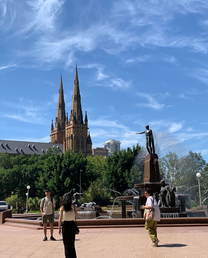From there I headed out the back door and ended up on Castlereagh Street, this was symbolic because yesterday while I was wandering around the Apple Store a friend in Australia messaged me asking me if I was anywhere near Castlereagh St coz there had been a shooting there and I should avoid the area. But I had no idea where it was and everyone around me was carrying on like nothing was wrong so I figured it was quite far from where I was – turns out it was just one block away! I saw straight ahead there was a beautiful park and a massive cathedral so I headed for that and stood in the shade for a bit.