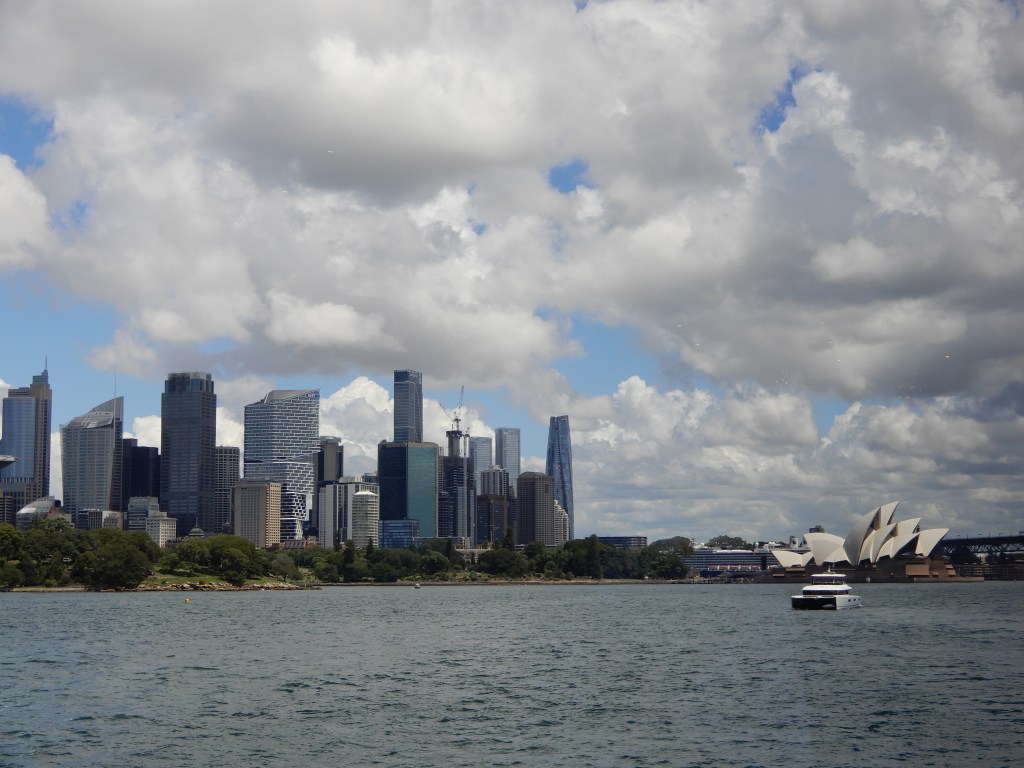 According to the weather forecast and concerned friends the weather in Sydney was stormy with massive downpours affecting all travel, but about 30 minutes before landing all that cleared up and we arrived in sunshine.