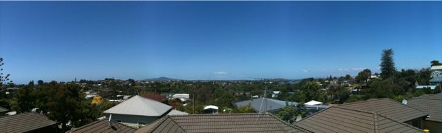 Still on holiday… Just mucking around at home, found a new application for my iPhone that creates one panoramic image out of several shots. See below for my first attempt (you can click the image if you would like a better look).