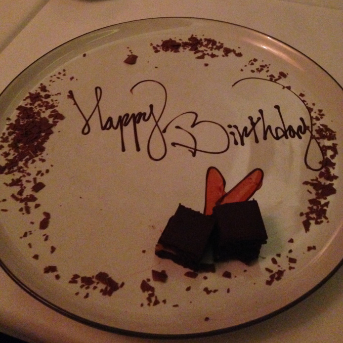 The last part of my birthday was spent up the Sydney Tower in the revolving restaurant “Orbit”. The evening was fabulous, great company, great food and spectacular views. The staff even suprised us with a Happy Birthday plate decorated in chocolate words.